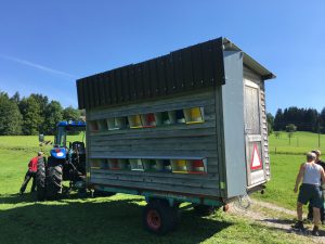 Unser erster Bienenwagen steht in Herisau, Nieschbergstrasse bei einem Bio-Bauernhof und bietet 14 Bienenvölkern Platz.
